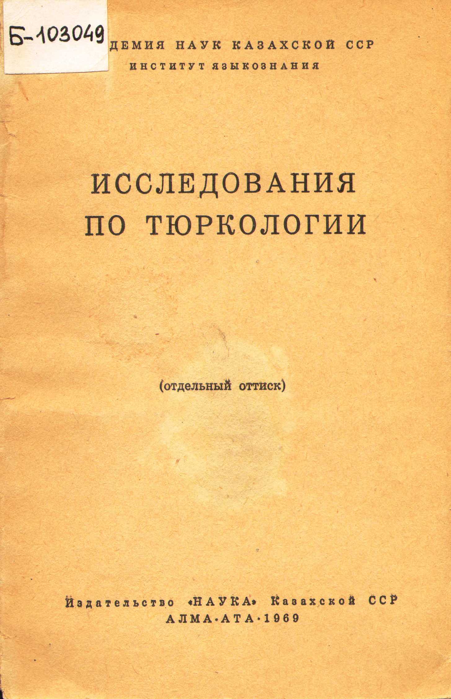 Б-102489 Юлдашев, А.А. Об аналитических формах настоящего времени в тюркских языках / А.А. Юлдашев // Проблемы тюркологии и истории востоковедения. – Казань : Изд-во Казанского ун-та, 1964. – С.192-206.