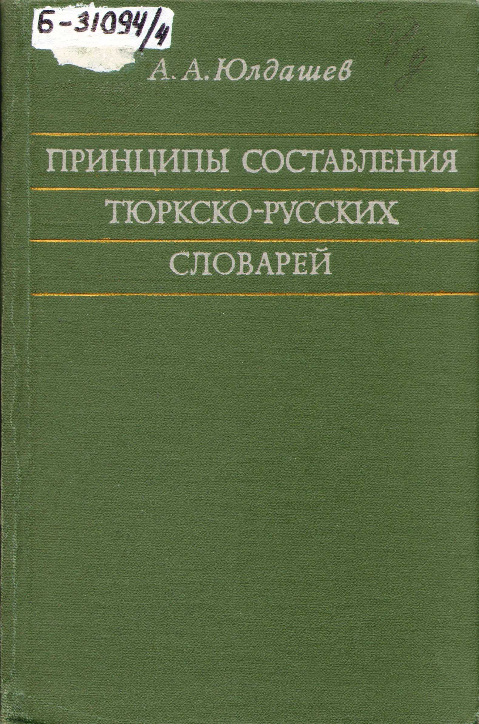 ![]() | Б-31094 Юлдашев, А.А. Принципы составления тюркско-русских словарей / А.А. Юлдашев ; Акад. наук СССР, Ин-т языкознания. – Москва : Наука, 1972. – 416 с.