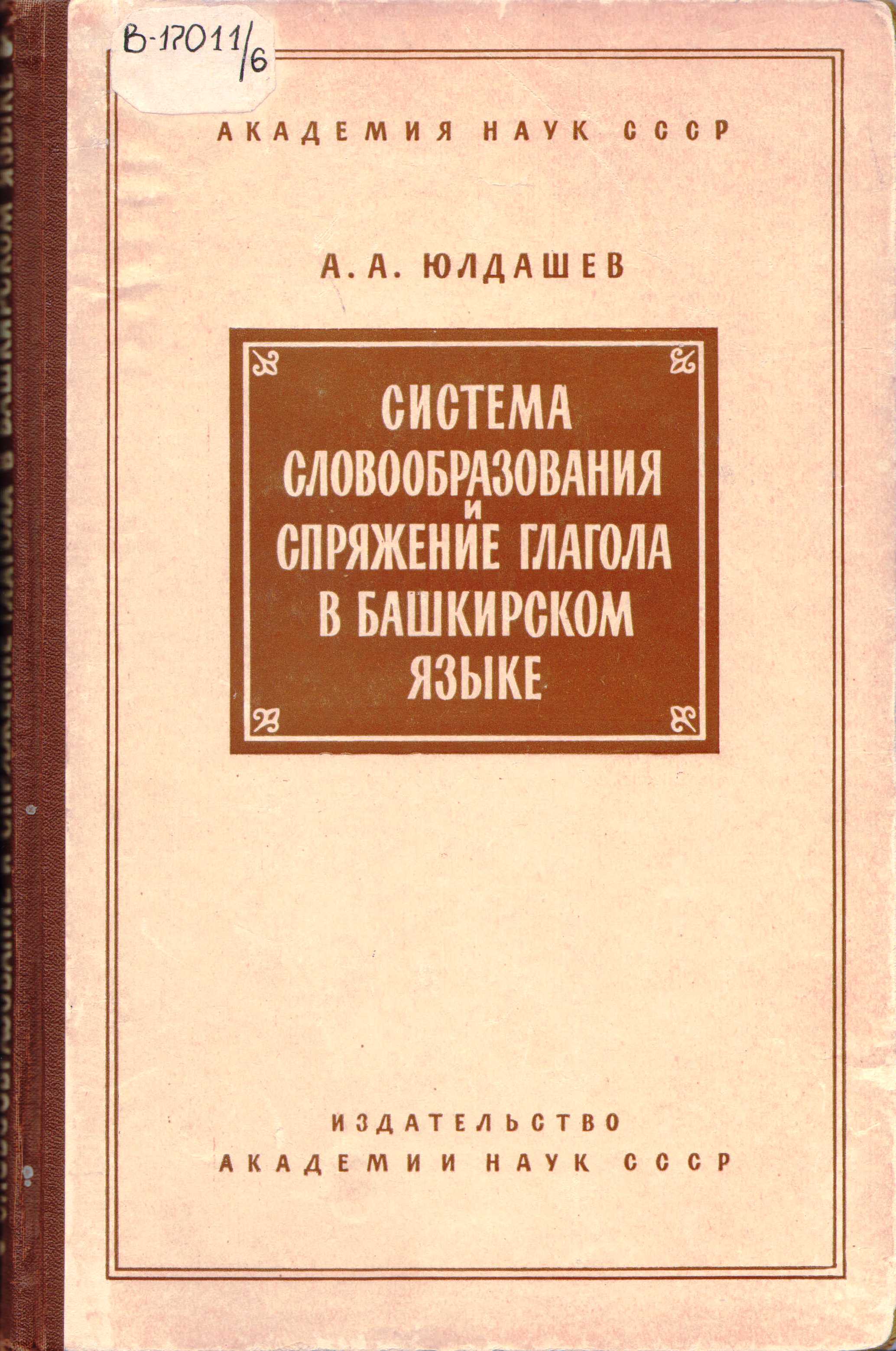 ![]() | В-17011 Юлдашев, А.А. Система словообразования и спряжение глагола в башкирском языке / А.А. Юлдашев ; [отв. ред.: Н.К. Дмитриев, Е.И. Убрятова]. – Москва : Изд-во Акад. наук СССР, 1958. – 196 с.