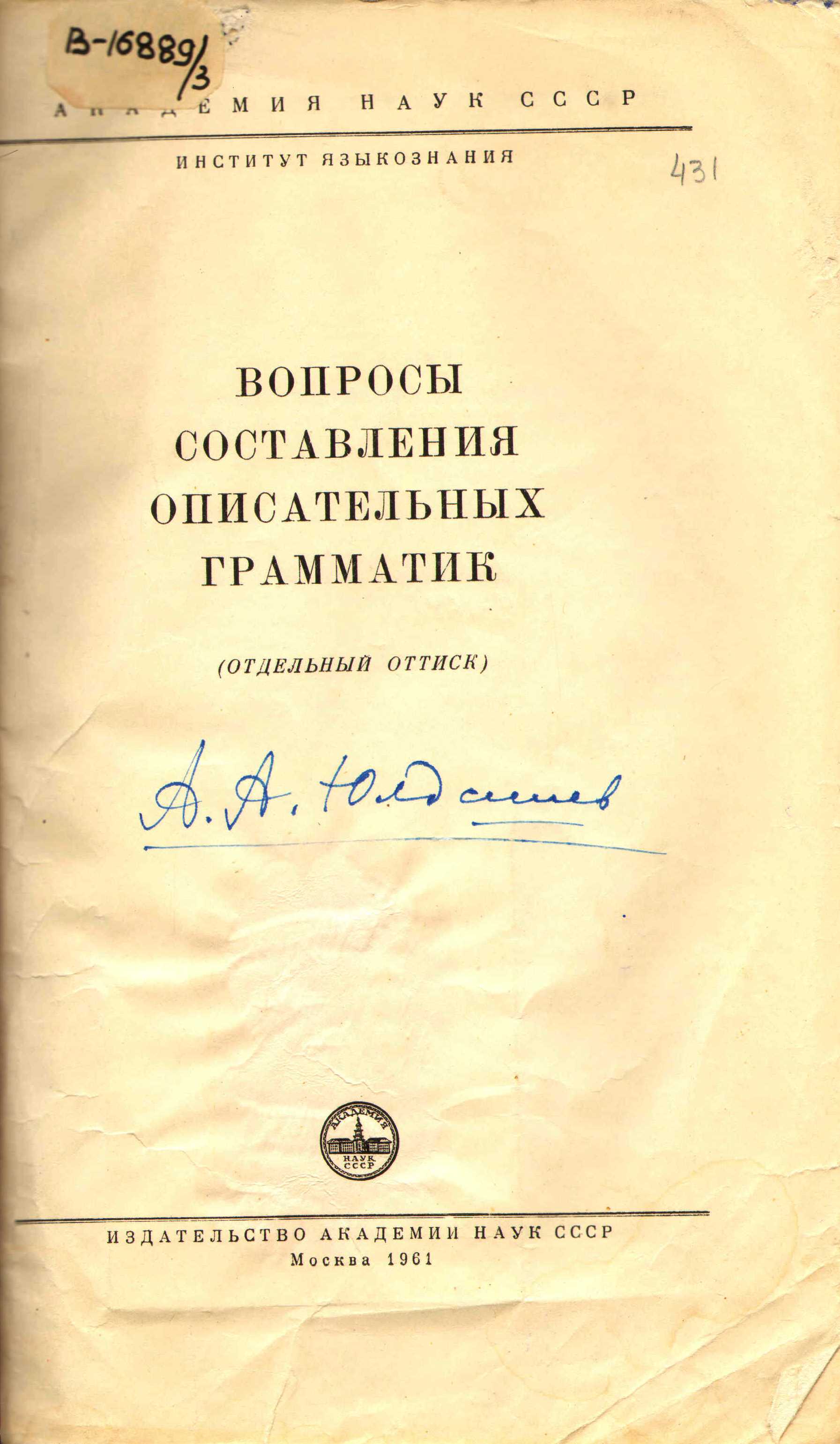 В-20177 Юлдашев, А.А. [Выступление к докладам Б.А. Серебренникова и А.Х. Фатыхова] / А.А. Юлдашев // Вопросы составления описательных грамматик языков народов СССР : стенограмма Координационного совещ. по проблемам простого предложения и категории залога. – Уфа, 1958 [вып. дан. 1959]. – С.102-104.
