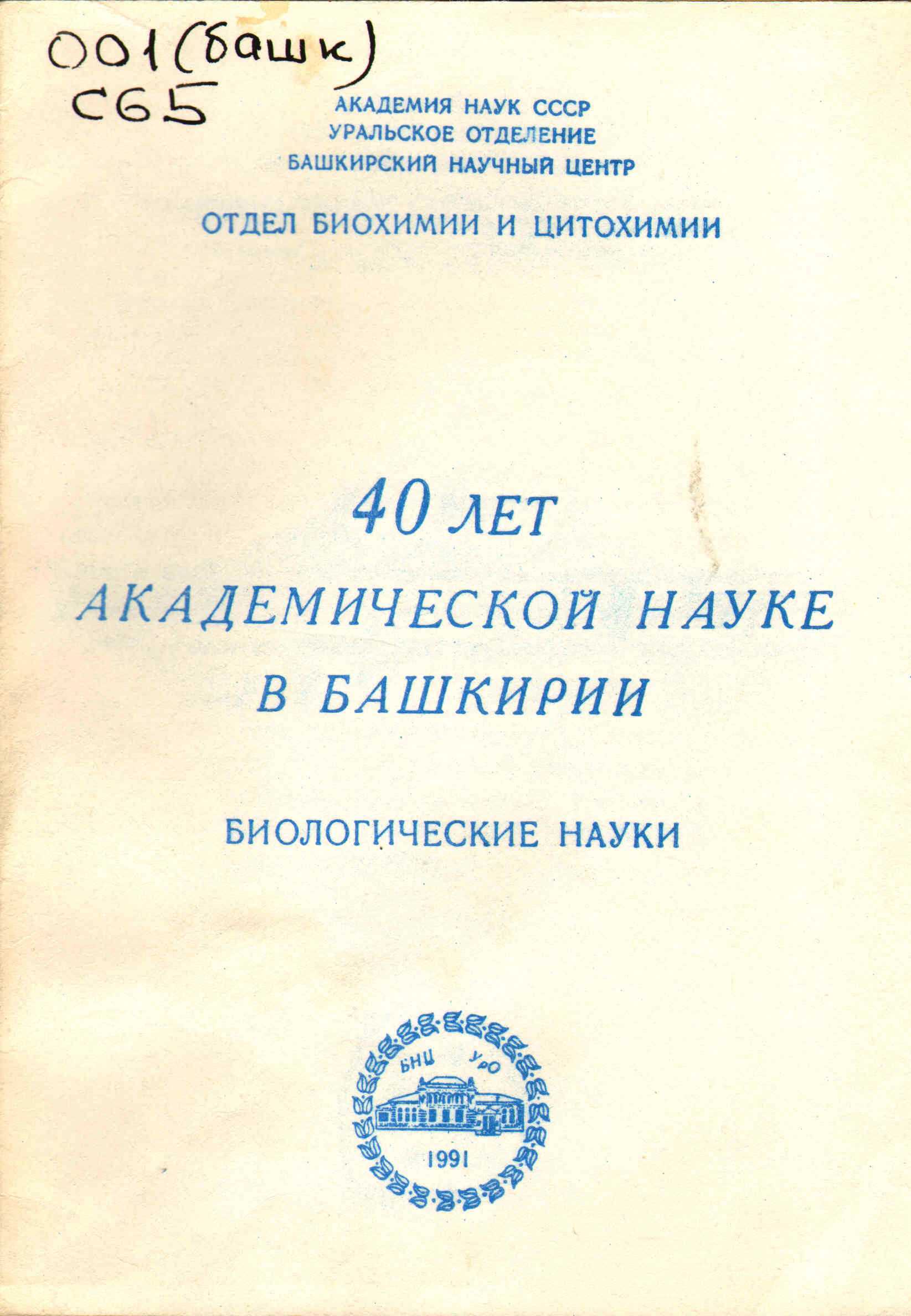 ![]() | 001(башк) С 65 40 лет академической науке в Башкирии. Биологические науки / подг. и науч. ред.: В.А. Вахитов; И.Ю. Долматова. – Уфа, 1991. – 10 с.