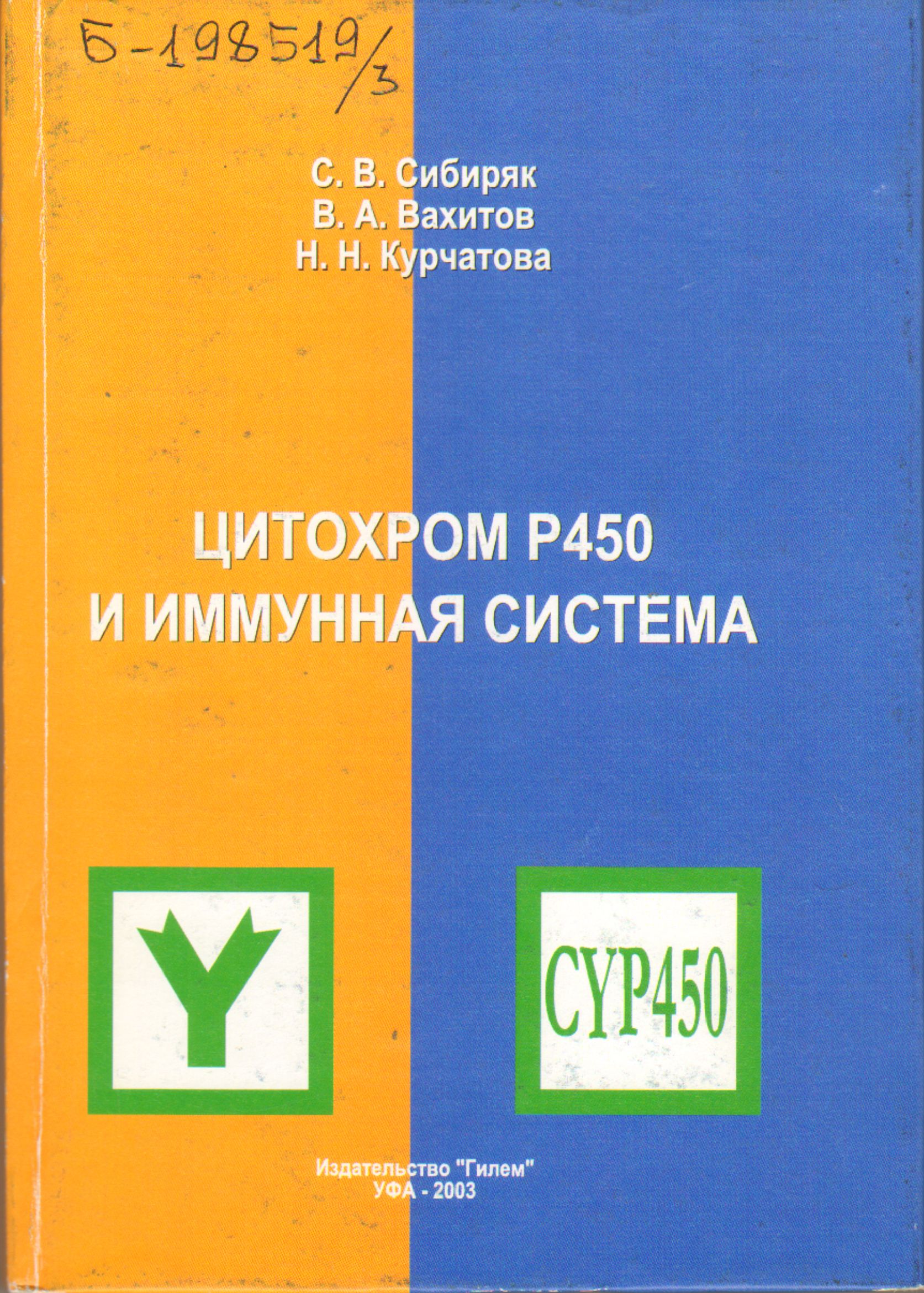 ![]() | Б-198519 Сибиряк, С.В. Цитохром Р450 и иммунная система : факты, гипотезы, перспективы / С.В. Сибиряк, В.А. Вахитов, Н.Н. Курчатова ; Акад. наук Респ. Башкортостан, Отд-ние биол. наук, Всерос. центр глазной и пластич. хирургии МЗ РФ. – Уфа : Гилем, 2003. – 211 с. : ил.