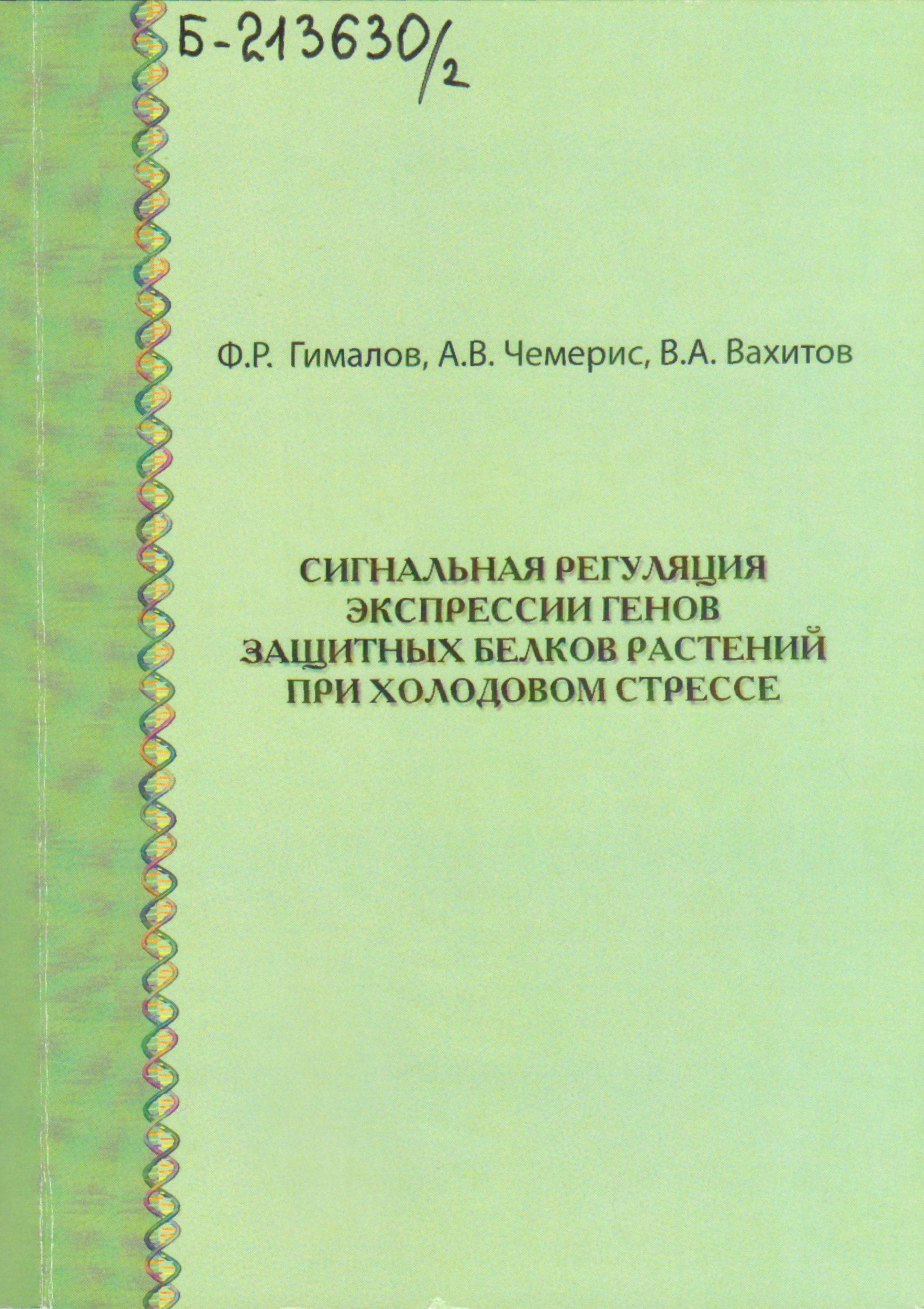 У 78 О восприятии растением холодового сигнала / Гималов Ф.Р., Чемерис А.В., Вахитов В.А. // Успехи современной биологии. - 2004. - Т.124, №2. - С. 185-196.