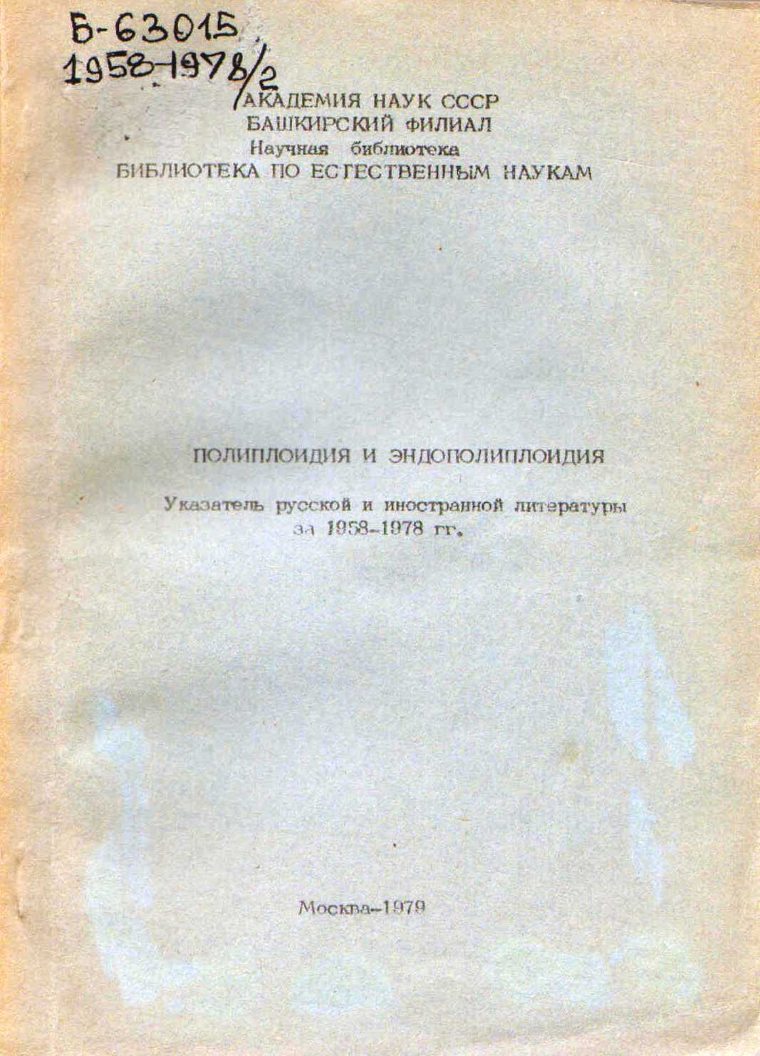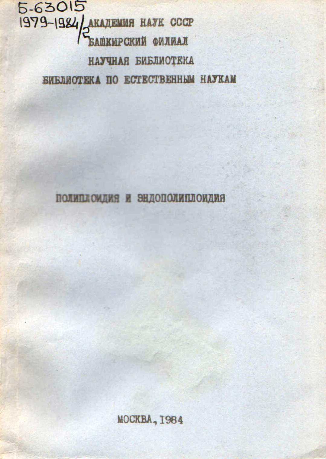 ![]() | Б-63015 1958-1978 Полиплоидия и эндополиплоидия : Указ. рус. и иностр. лит. за 1958-1978 гг. / сост. М.Ф. Милицкая, Л.А. Бурцева, В.А. Вахитов ; науч. ред. Ш.Я. Гилязетдинов ; отв. ред. О.Е. Белобородова ; АН СССР. Башк. фил., Науч. б-ка, Б-ка по естеств. наукам. – Москва : БЕН АН СССР, 1979. – 174 с.