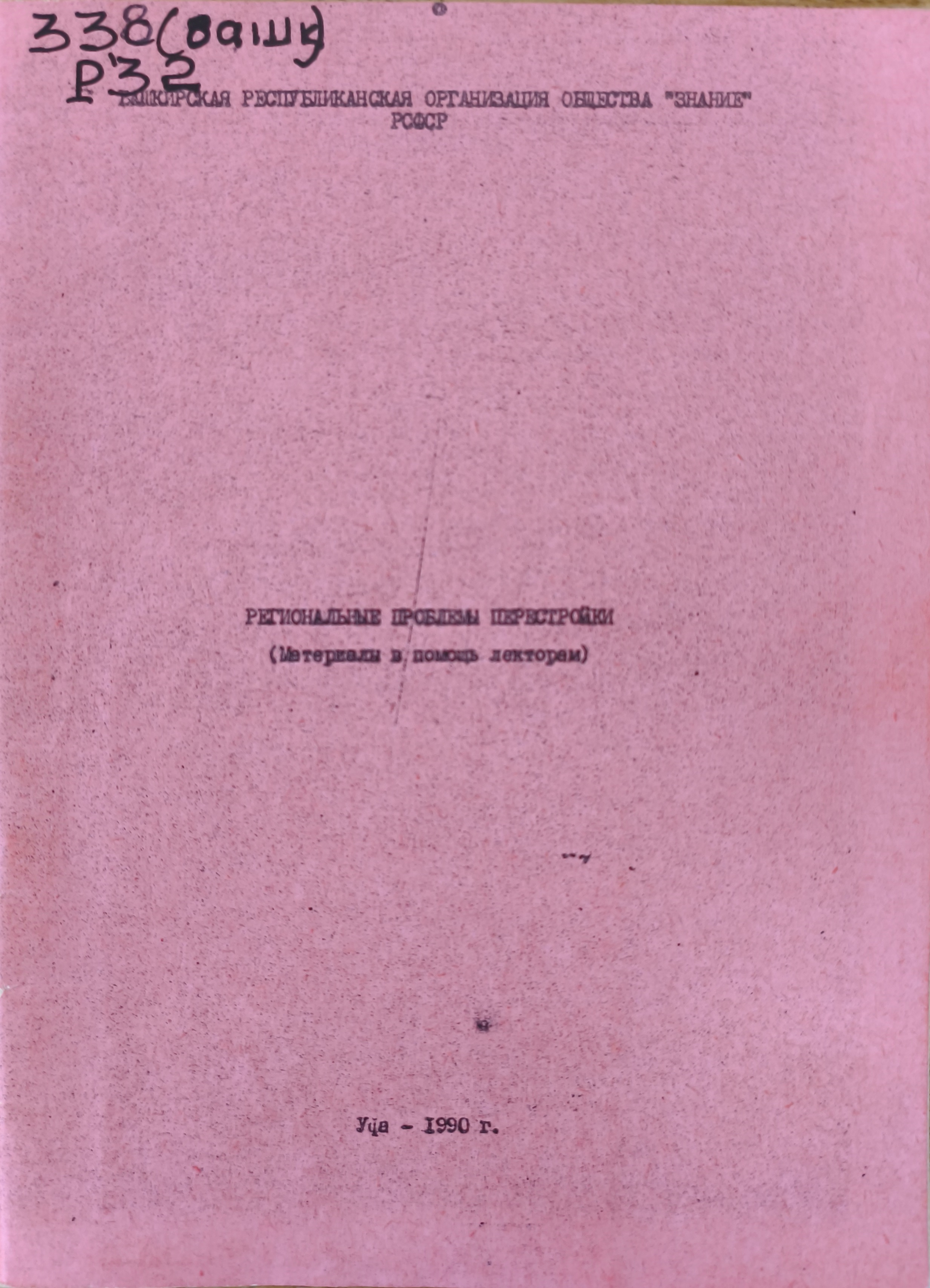 ![]() | 338(башк) Р 32 Региональные проблемы перестройки : (материалы в помощь лекторам) / Башк. респ. орг. о-ва «Знание» РСФСР; материалы подгот.: К.Н. Юсупов, Л.Л. Левина, А.Ю. Дышаев; отв. за вып. А.Н. Рублик; рец.: В.Г. Карпов, Р.Ф. Гатауллин. – Уфа, 1990. – 28 с.