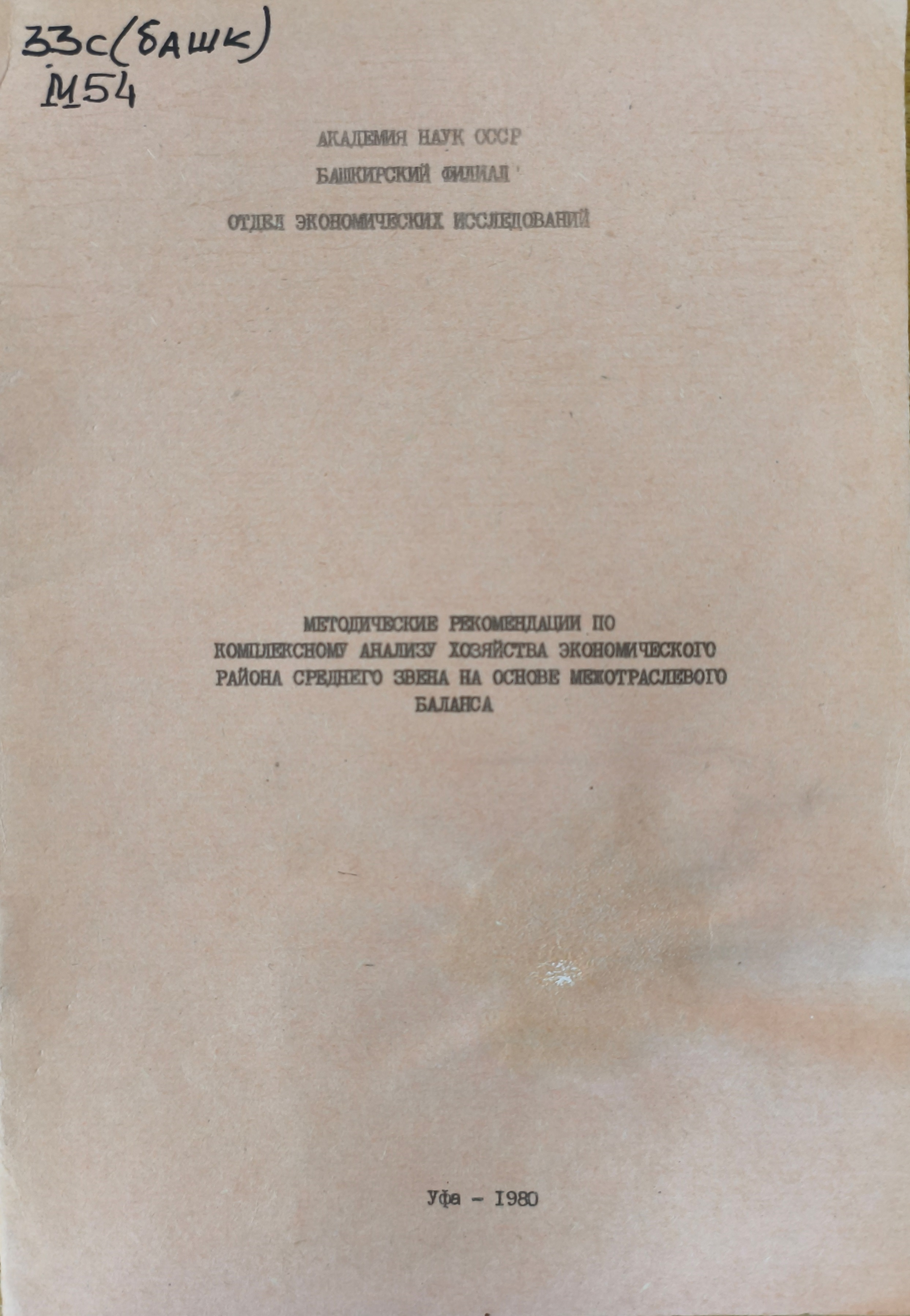 ![]() | 33с(башк) М 54 Методические рекомендации по комплексному анализу хозяйства экономического района среднего звена на основе межотраслевого баланса / К.Н. Юсупов, Р.Г. Ишназарова, Л.Г. Левина [и др.]. – Уфа, 1980. – 20 с.