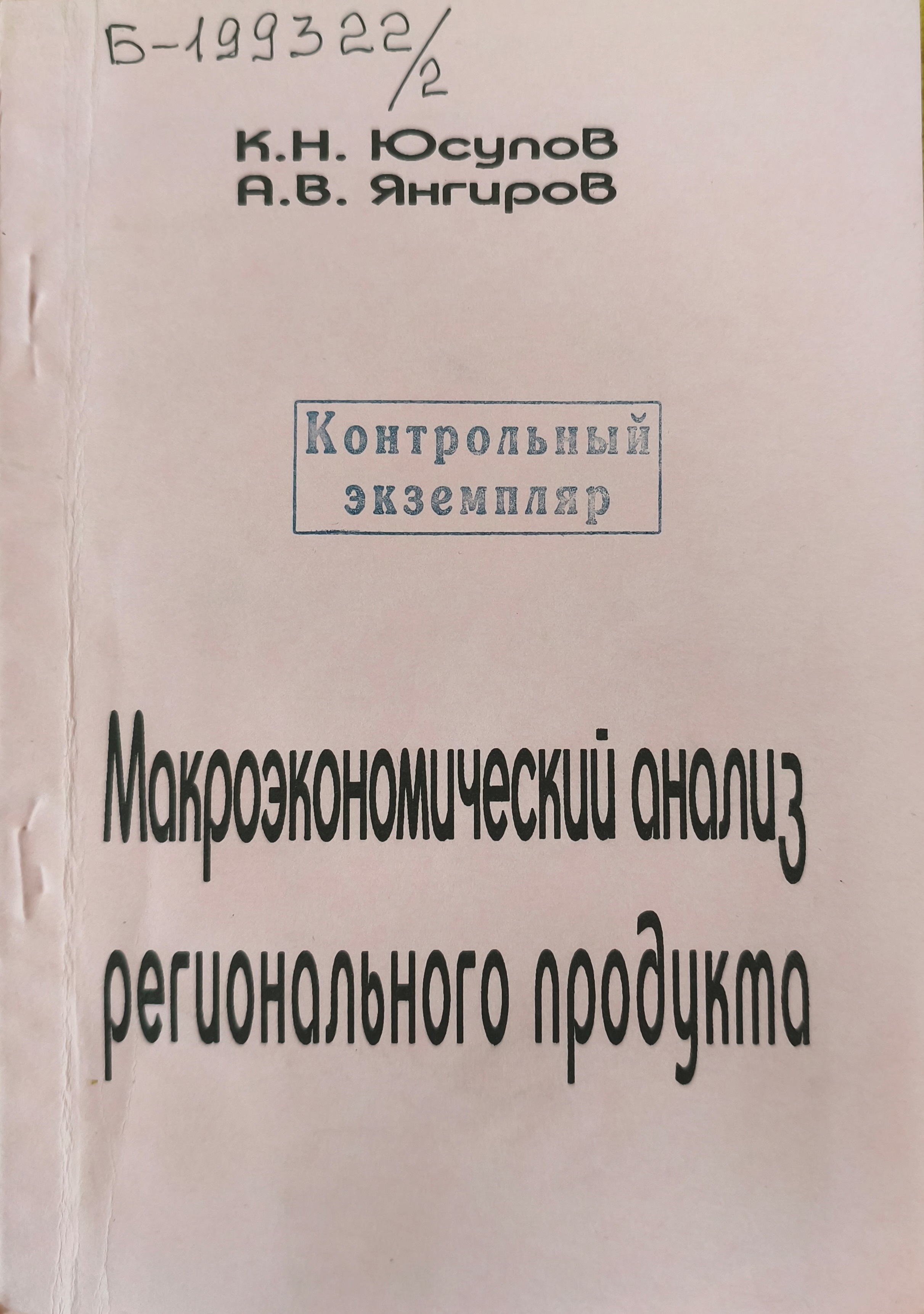 Б-53550 Юсупов, К.Н. Региональные особенности статистики и анализа общественного продукта низового экономического района / К.Н. Юсупов // Проблемы эффективности региональной экономики. – Уфа, 1977. – С. 71-77.